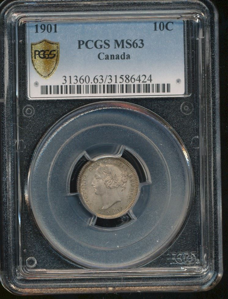 1901 10¢ PCGS MS63. Attractive rustic shades.