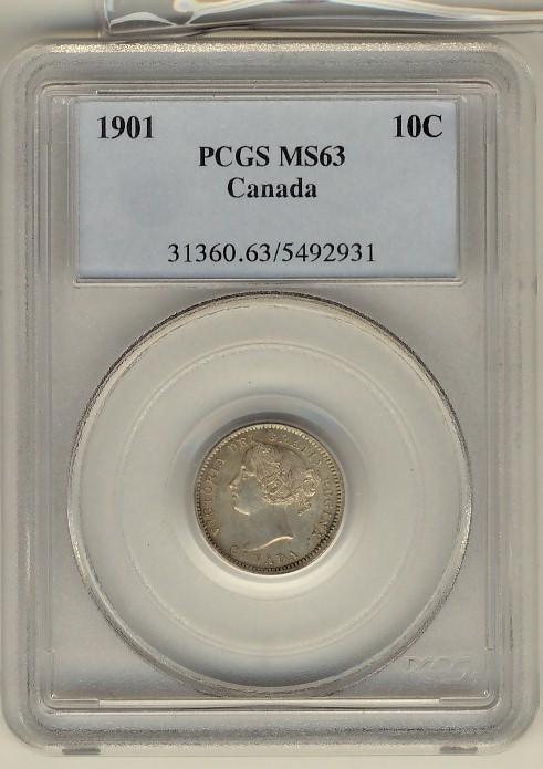 1901 10¢ PCGS MS63. White and lustrous.