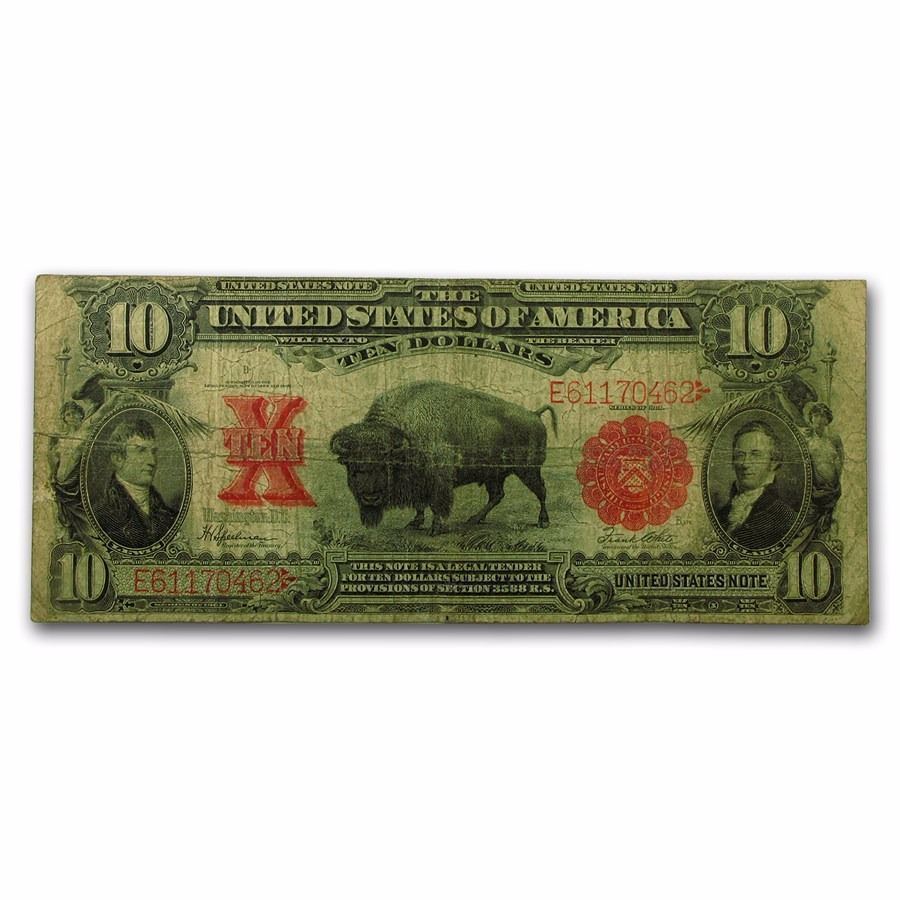 1901 $10 United States Note Bison VG. One of the most popular designs of our early 20th century paper money! This popular issue features busts of Lewis & Clark flanking a Bison in the center! This $10 Legal Tender note was issued from 1922 through 1927.
