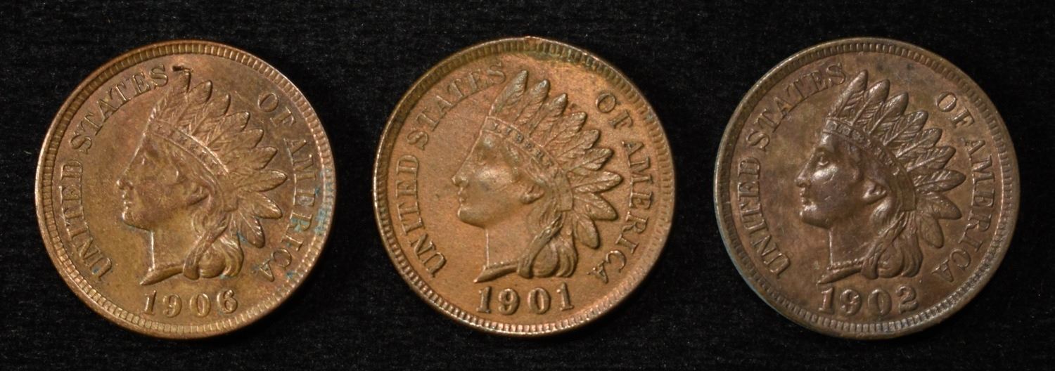 1901, 1902, 1906 INDIAN CENTS AU/BU