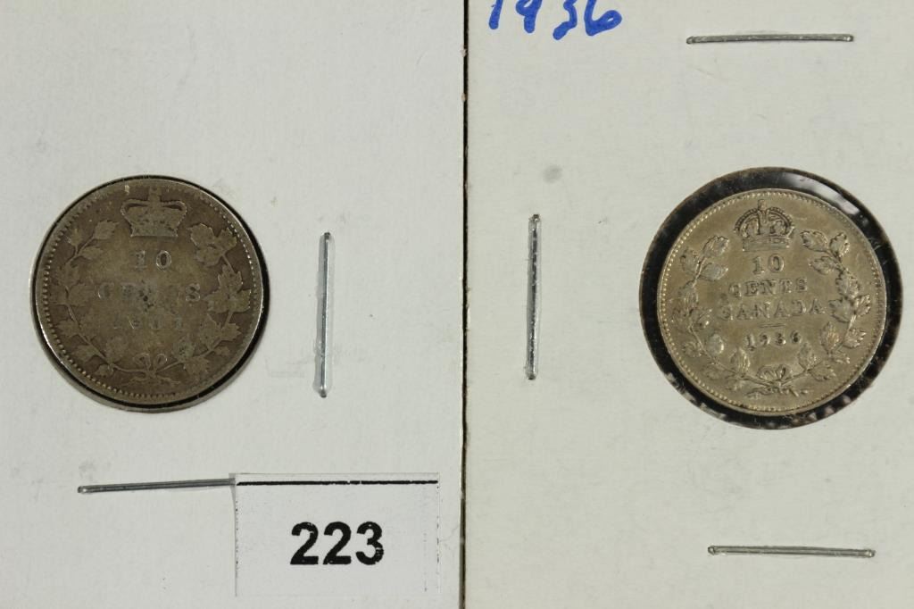 1901 & 1936 CANADA SILVER 10 CENTS