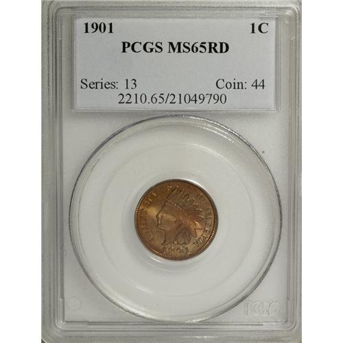 <B>1901 1C MS65 Red PCGS.</B></I> PCGS Population (175/51). NGC Census: (204/60). Mintage: 79,611,144. Numismedia Wsl. Price for NGC/PCGS coin in MS65: $420. (#2210)<BR><BR><b>Shipping:</b> Coins & Currency (<a target="_blank" href="http://www.heritageauctions.com/common/shipping.php">view shipping information</a>)