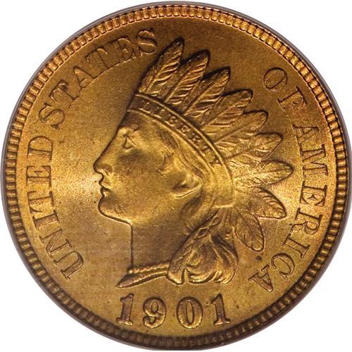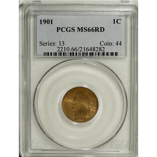 <B>1901 1C MS66 Red PCGS.</B></I> Date and type collectors alike will appreciate the quality and beauty of this fully brilliant Premium Gem. Both sides have frosty orange surfaces and excellent design definition. Although not a rare date, few finer pieces have been certified. Population: 49 in 66 Red, 2 finer (2/07).<BR><BR><b>Shipping:</b> Coins & Currency (<a target="_blank" href="http://www.heritageauctions.com/common/shipping.php">view shipping information</a>)