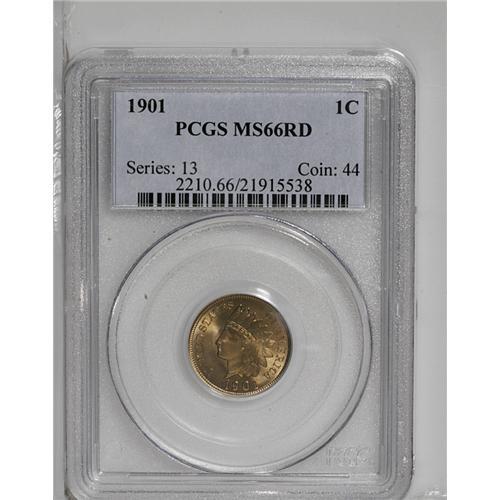 <B>1901<1C> MS66 Red PCGS.</B></I> Outstanding and original reddish-orange color dominates this slightly granular, yet highly appealing example. For the color category, PCGS has graded only two finer.