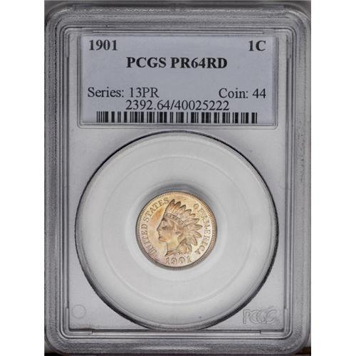 1901 1C PR64 Red PCGS. Copper-gold patina is imbued wi 1901[1C] PR64 Red PCGS.