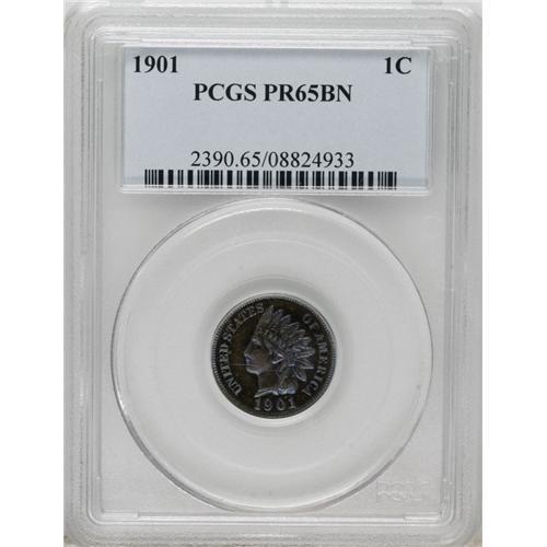 <B>1901 1C PR65 Brown PCGS.</B></I> Electric violet and blue overtones dominate this deep brown Gem. Immensely appealing with sharp detail and plenty of flash. Population: 6 in 65 Brown, 2 finer (12/06).<BR><BR><b>Shipping:</b> Coins & Currency (<a target="_blank" href="http://www.heritageauctions.com/common/shipping.php">view shipping information</a>)