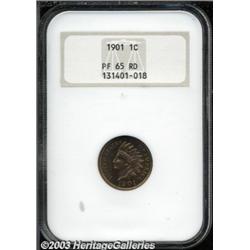 1901 1C PR65 Red NGC. An exquisitely struck Gem with luminous orange and pale yellow-gold colors. Carefully preserved, and only a single carbon fleck is observed after the final A in AMERICA. Although proof Indian Cents are not especially rare, not many have survived in lofty grades with full Red color. Population: 12 in 65, 15 finer (11/03). Important notice: Heritage usually auctions material at the rate of 200-250 lots per hour. On some occasions eBay Live bid software or the Internet may not be able to keep up with the pace of the auction. We recommend placing a realistic absentee bid now as insurance to avoid disappointment. Occasionally the auctioneer may eliminate or reject an eBay Live bid, and the auctioneer may also reopen a lot after the close of the eBay live bidding (usually because we missed an audience bid), and may reject your bid even if it shows you as the winning bidder. By bidding via eBay Live, you agree that Heritage may award the lot to another bidder at its sole discretion under the circumstances described above or any other reasonable circumstances. Also please note that all Heritage lots purchased through eBay Live carry a 20% Buyer's Premium. Please make sure you read the Terms and Conditions before you bid.