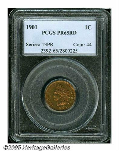 <B>1901<1C> PR65 Red PCGS.</B></I> Shades of olive-green, lavender, and orange-gold produce an attractive coin. Population: 28 in 65 Red, 24 finer (3/05).