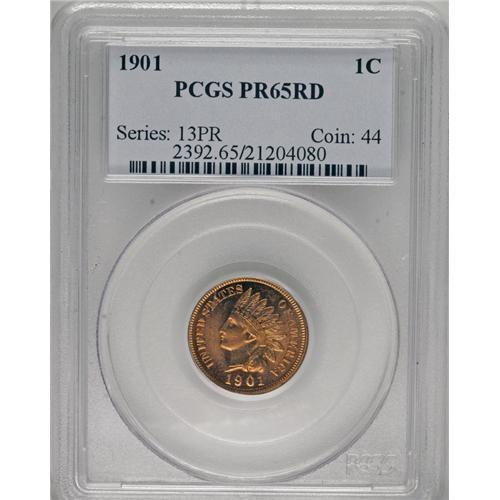 <B>1901 1C PR65 Red PCGS.</B></I> Snow-PR1. Strong repunching is evident at the right bases of 90 in the date. Well struck and contact-free, with noteworthy reflectivity in the fields and appealing copper-red toning across the reverse. Scattered carbon flecks preclude an even finer grade assessment.<BR><BR><b>Shipping:</b> Coins & Currency (<a target="_blank" href="http://www.heritageauctions.com/common/shipping.php">view shipping information</a>)