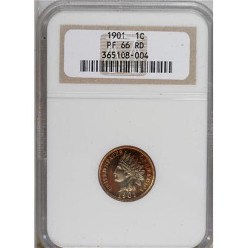 <B>1901 1C PR66 Red NGC.</B></I> The fields of this early 20th century Indian cent proof are copper-orange, while the portrait is mint-green. A striking and exquisitely preserved specimen. Census: 11 in 66 Red, 5 finer (10/07).<BR><BR><B>Coin Engraver:</B> James B. Longacre<BR><BR><b>Shipping:</b> Coins & Currency (<a target="_blank" href="http://www.heritageauctions.com/common/shipping.php">view shipping information</a>)