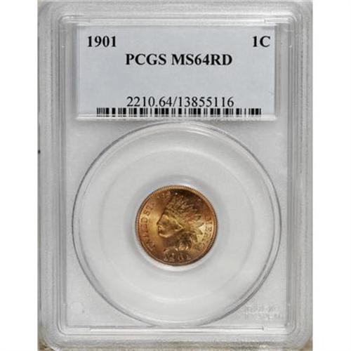 <B>1901 1C MS64 Red PCGS.</B></I> PCGS Population (303/226). NGC Census: (140/134). Mintage: 79,611,144. Numismedia Wsl. Price for NGC/PCGS coin in MS64: $152. (#2210)<BR><BR><B>Coin Engraver:</B> James B. Longacre<BR><BR><b>Shipping:</b> Coins & Currency (<a target="_blank" href="http://www.heritageauctions.com/common/shipping.php">view shipping information</a>)