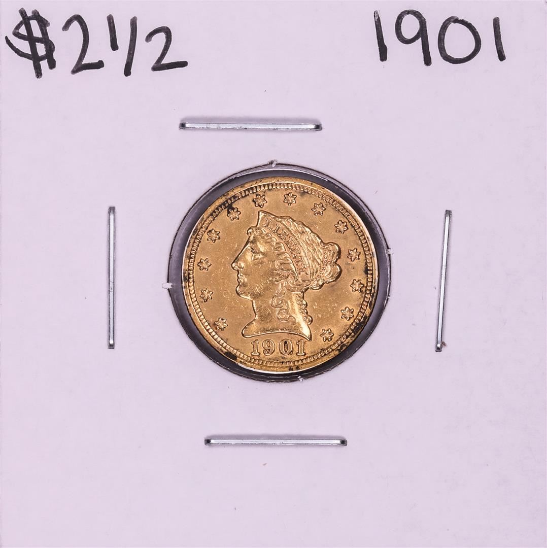 One 1901 $2 1/2 Liberty Head Quarter Eagle Gold Coin.