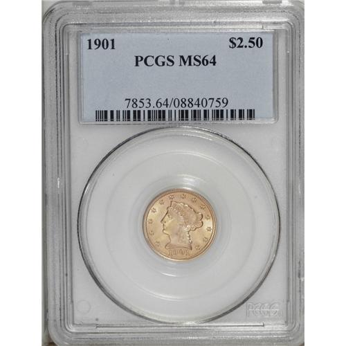 1901 $2 1/2 MS64 PCGS. Choice and sharply struck, this