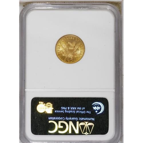 <B>1901<$2 1/2> MS66 NGC.</B></I> Another of those illustrious few coins that engender instant eye appeal and desirability, this immaculate Premium Gem has enchanting orange-gold surfaces and the cartwheel luster of a Morgan dollar. The strike is virtually full throughout, and only a few tiny abrasions can be seen with a loupe, consistent with the MS66 grade level. NGC has graded 16 pieces finer (9/06).