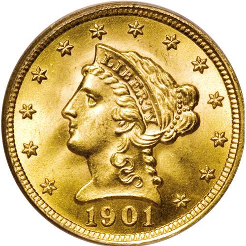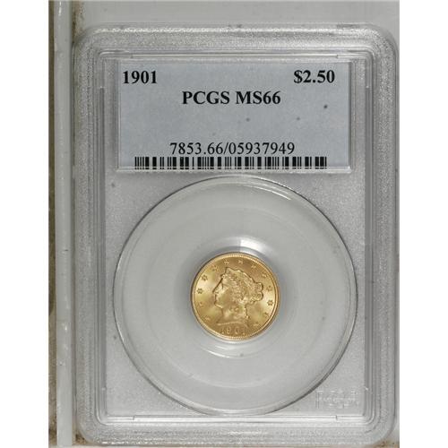 1901 $2 1/2 MS66 PCGS. The plentiful mintage of 91,000