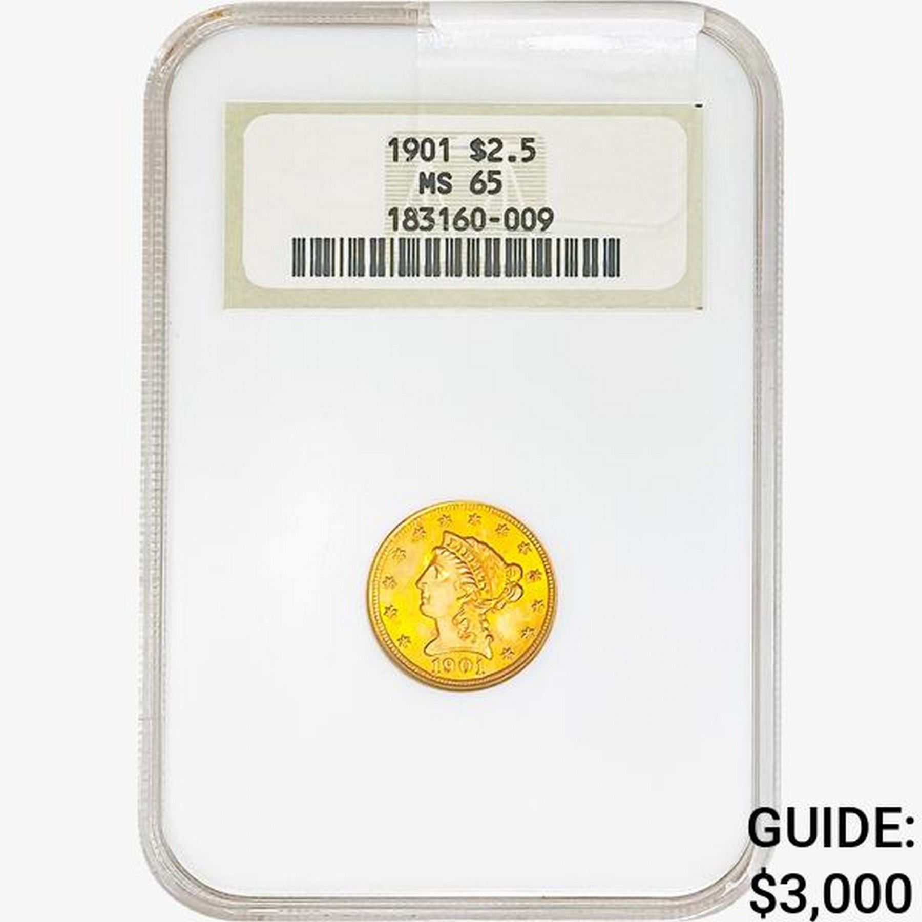 1901 $2.50 Gold Quarter Eagle NGC MS65