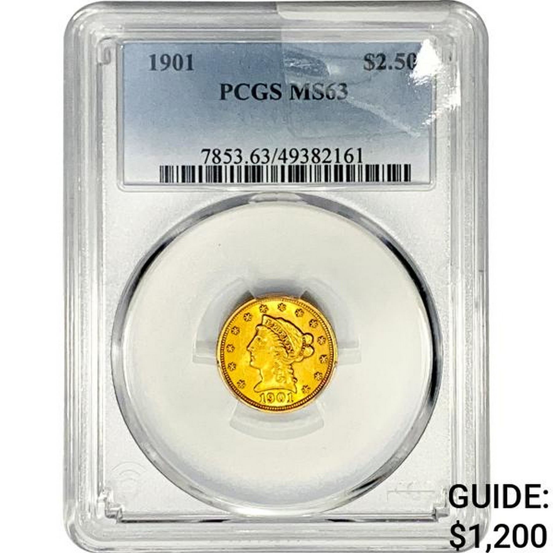 1901 $2.50 Gold Quarter Eagle PCGS MS63