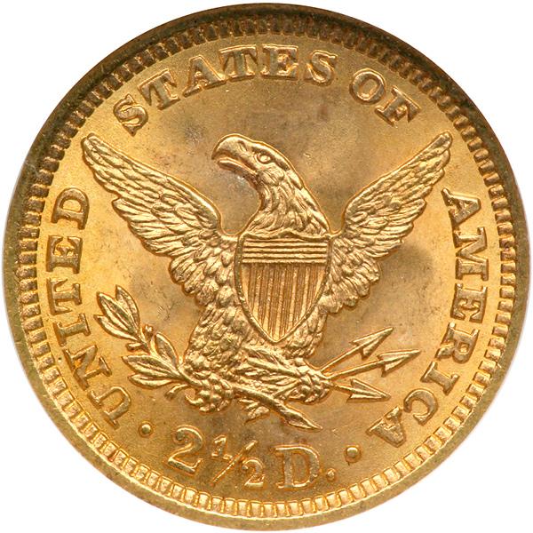 1901 $2.50 Liberty. NGC graded MS-66. Well struck with attractive golden shades. Pop 111; 23 finer, 21 in 67, 1 in 67 Star, and 1 in 68 (PCGS # 7853) .