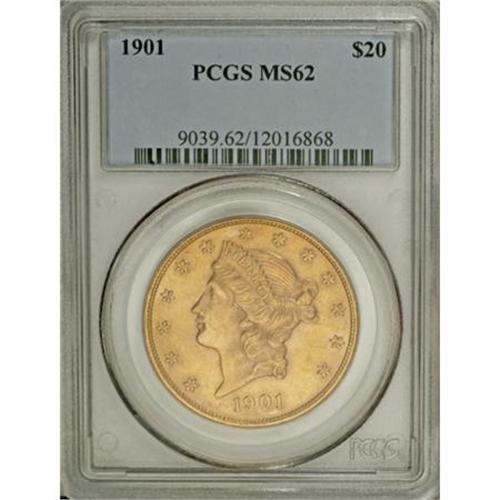 <B>1901 $20 MS62 PCGS.</B></I> A sharply struck sun-gold example of this turn-of-the-century issue, luminous with a number of wispy marks on and near the portrait. Despite its flaws, this Philadelphia double eagle offers solid eye appeal.<BR><I>From The York/Hallenbeck #2 Current Finest PCGS Registry Set of Liberty Double Eagles.</B></I><BR><BR><B>Coin Engraver:</B> James B. Longacre<BR><BR><b>Shipping:</b> Coins & Currency (<a target="_blank" href="http://www.heritageauctions.com/common/shipping.php">view shipping information</a>)