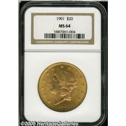 <B>1901 $20 MS64 NGC.</B></I> A dazzling near-Gem Coronet double eagle that has bright, swirling luster interrupted by a few minor obverse marks. Fully struck in all areas.<BR><I>From The Richard J. Chouinard Collection of United States Coins, Part Three.</B></I>