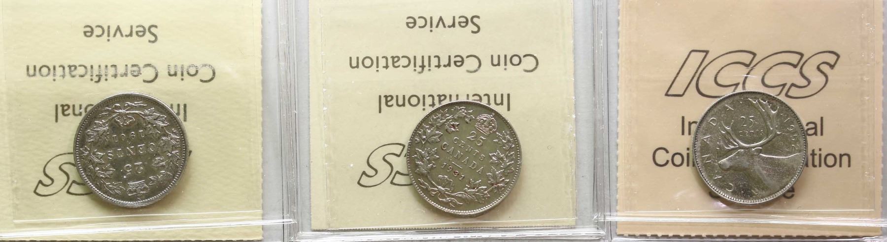 The cataloguer has taken every reasonable measure to ensure that all of the lots in this sale are as described and genuine. All raw coins and banknotes have been graded by the cataloger or the auction house which represent our best professional opinion. To grade coins and banknotes, we use Canadian grading standards, 42 years of experience and good conscience. However, grading is a subjective description in the opinion of the cataloger or the auction house. Among experts there are often differences of opinion on the grading and the eye appeal of a coin. The strike and the state of preservation are often debated. The Canadian Numismatic Company acts as an agent between consignors and buyers. The Canadian Numismatic Company does not guarantee that any coin or banknote cataloged will meet the standards, or the grade, of any third party grading companies. No warranty, whether impressed or implied. Items are as is, no warranty given. We cannot accept responsibility and waive all liability resulting in financial losses, and or incidentals accruing from the sale of any items, nor can we guarantee that items graded by third party services will grade the same if submitted to a different grading service or re-submitted to the same company. Statements by The Canadian Numismatic Company regarding the condition, the eye appeal, the strike and the population of items are for guidance only. All lots offered are sold "AS IS". Title to all lots remains with the auction house until paid for in full by the purchaser. But they are held at the risk of the purchaser once the time of the sale.