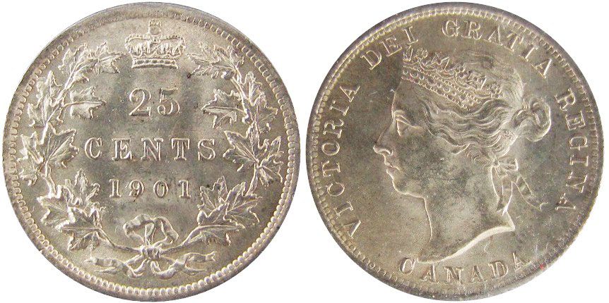 1901 25¢ ICCS MS64. Lustrous white with great lustre.