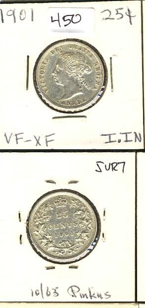 1901 25¢ VF. A well struck VF example.
