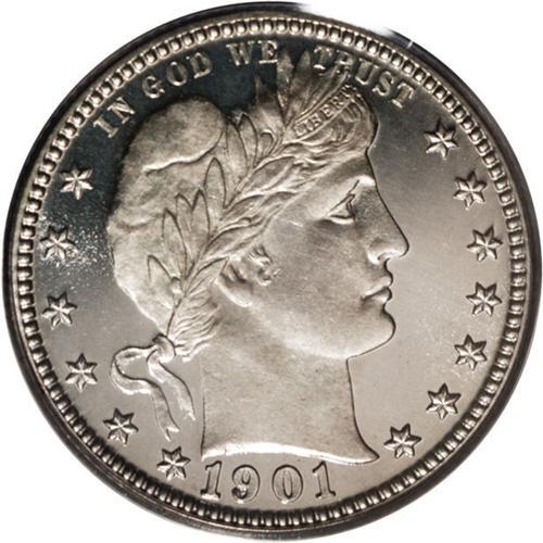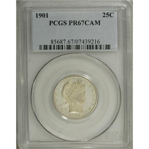 1901 25C PR67 Cameo PCGS. Fully struck and pristine, w