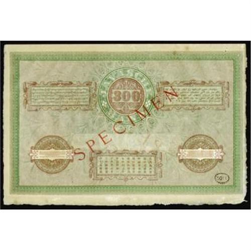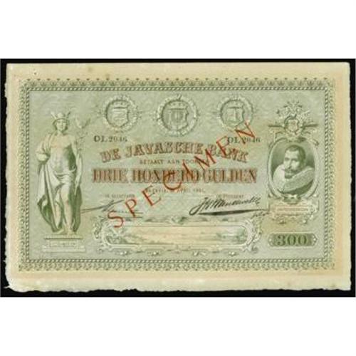 <style type="text/css"> body, td, th { font-family: Arial, Helvetica, sans-serif; font-size: 12px; color: #482424; margin: 0px; padding: 0px; } #header { background-image: url(http://www.bowersandmerena.com/ebay/images/template_v3_01.gif); clear: both; background-color: #590303; border-top-width: 2px; border-top-style: solid; border-top-color: #B38C4F; } #header #header_wrapper { height: 75px; clear: both; width: 800px; margin-right: auto; margin-left: auto; background-image: url(http://www.bowersandmerena.com/ebay/images/template_v3_03.gif); background-repeat: no-repeat; background-position: right; color: #F3EDCC; } #header #header_wrapper #header_logo { float: left; height: 75px; width: 444px; background-image: url(http://www.bowersandmerena.com/ebay/images/template_v3_02.gif); background-repeat: no-repeat; font-size: 10px; text-transform: capitalize; color: #B38C4F; } #header #header_wrapper #header_right { float: left; height: 75px; width: 356px; text-align: right; } #header #header_wrapper #header_right #headerLoginBtn { margin-bottom: 30px; } #header #header_wrapper #header_right input#txtSearch { color: #B49056; border: 1px solid #B49056; width: 175px; padding-top: 3px; padding-right: 3px; padding-bottom: 4px; padding-left: 3px; } #nav { height: 37px; background-image: url(http://www.bowersandmerena.com/ebay/images/template_v3_05.gif); clear: both; } #nav #nav_wrapper { height: 35px; width: 800px; margin-right: auto; margin-left: auto; border-left-width: 1px; border-left-style: solid; border-left-color: #B38C4F; } #nav #nav_wrapper a { padding-right: 15px; padding-left: 15px; border-right-width: 1px; border-right-style: solid; border-right-color: #B38C4F; height: 25px; padding-top: 10px; display: block; float: left; text-decoration: none; font-weight: bold; color: #5D0303; } #nav #nav_wrapper a:hover { color: #B38C4F; } #nav #nav_wrapper #search { float: right; padding-top: 7px; } #nav #nav_wrapper #search #txtSearch { font-family: Arial, Helvetica, sans-serif; font-size: 10px; text-transform: uppercase; color: #D2AE75; border: 1px solid #B38C4F; padding: 3px; } #content_bgd { background-image: url(http://www.bowersandmerena.com/ebay/images/template_v3_09.gif); background-repeat: repeat-y; background-position: center; padding-top: 15px; padding-bottom: 15px; background-color: #FBFBDB; } #content_wrapper { clear: both; height: auto; width: 800px; margin-right: auto; margin-left: auto; } .LotDetailWhite { line-height:normal; font-size:13px; font-family: arial,helvetica,sans-serif; color: White; font-weight: bold; } .LotDetailInformation { line-height:normal; font-size: 13px; font-family: arial,helvetica,sans-serif; } .LotDetailMessage { line-height:normal; font-size: 13px; font-family: arial,helvetica,sans-serif; color: red; } } tr.HeaderAuctionTitle td { color: #000000; font-weight: bold; padding: 2px; background-image: url(http://www.bowersandmerena.com/ebay/images/template_v3_05.gif); background-repeat: repeat-x; border-bottom-width: 1px; border-bottom-style: solid; border-bottom-color: #B38C4F; } table.AuctionSummary a, table.AuctionSummary a:link, table.AuctionSummary a:visited { color: #0000FF; text-decoration: none; } } td.tableHeaderLeft { border-left-width: 1px; border-left-style: solid; border-left-color: #B38C4F; } td.tableHeaderRight { border-right-width: 1px; border-right-style: solid; border-right-color: #B38C4F; } td.tableCellMiddle { border-left-width: 1px; border-left-style: solid; border-left-color: #B38C4F; border-right-width: 1px; border-right-style: solid; border-right-color: #B38C4F; padding: 5px; } tr.footer td { border-top-width: 1px; border-top-style: solid; border-top-color: #B38C4F; } </style> </head> <body> <div id="header"> <div id="header_wrapper"> <div id="header_logo"> </div> <div id="header_right"> </div> </div> </div> <div id="nav"> <div id="nav_wrapper"> <a href="http://www.bowersandmerena.com">Our eBayLive Auctions</a> <a href="#PaymentInfo">Payment Information</a> <a href="#ShippingInfo">Shipping Information</a> <a href="#About">About Bowers and Merena</a> </div> </div> <div id="content_bgd"> <div id="content_wrapper"> <table width="100%" border="0" cellpadding="5" cellspacing="0" class="AuctionSummary"> <tbody> <tr class="HeaderAuctionTitle" style="height: 25px;"> <td align="left" class="tableHeaderLeft" > </td> <td align="center" class="tableHeaderRight"> <span style="font-size: large;">Lot #2903. Netherlands Indies. 1901 300 Gulden. De Javasche Bank. Specimen. Unc.</span> </td> </tr> <tr> <td colspan="3" class="tableCellMiddle"> P-58s. The 300 Gulden note is the best note of the series and fortunately this example is fully Uncirculated. These notes are typically found in average circulated grades so finding this beautifully preserved Specimen is a true treasure. The green inks on the face are very bold which give way to the elegant ornamental underprint. We expect to see spirited bidding on this piece as well as the others in this set. A few pinholes in the top left are noted for accuracy.