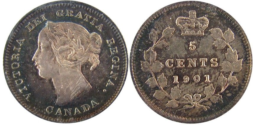 1901 5 Cents, ICCS MS65; Cameo, attractive rainbow toning.