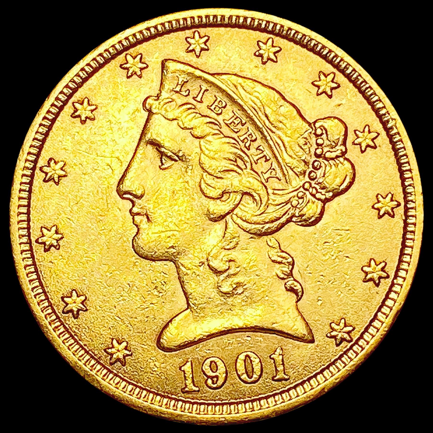 1901 $5 Gold Half Eagle UNCIRCULATED