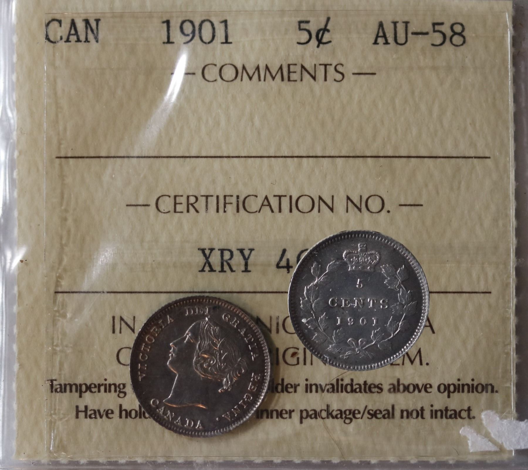 1901 5¢ ICCS Choice About Uncirculated-58.