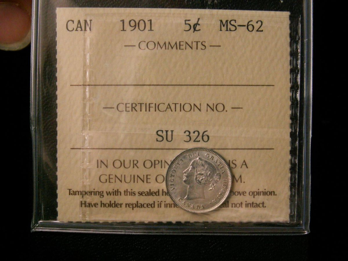 1901 5¢ ICCS MS62. Silver grey with lustre.