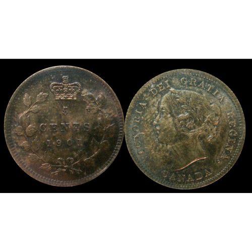 1901 5¢ ICCS MS65 PQ+ Nice tone over full luster. Excellent strike with clean fields and nice surfaces.