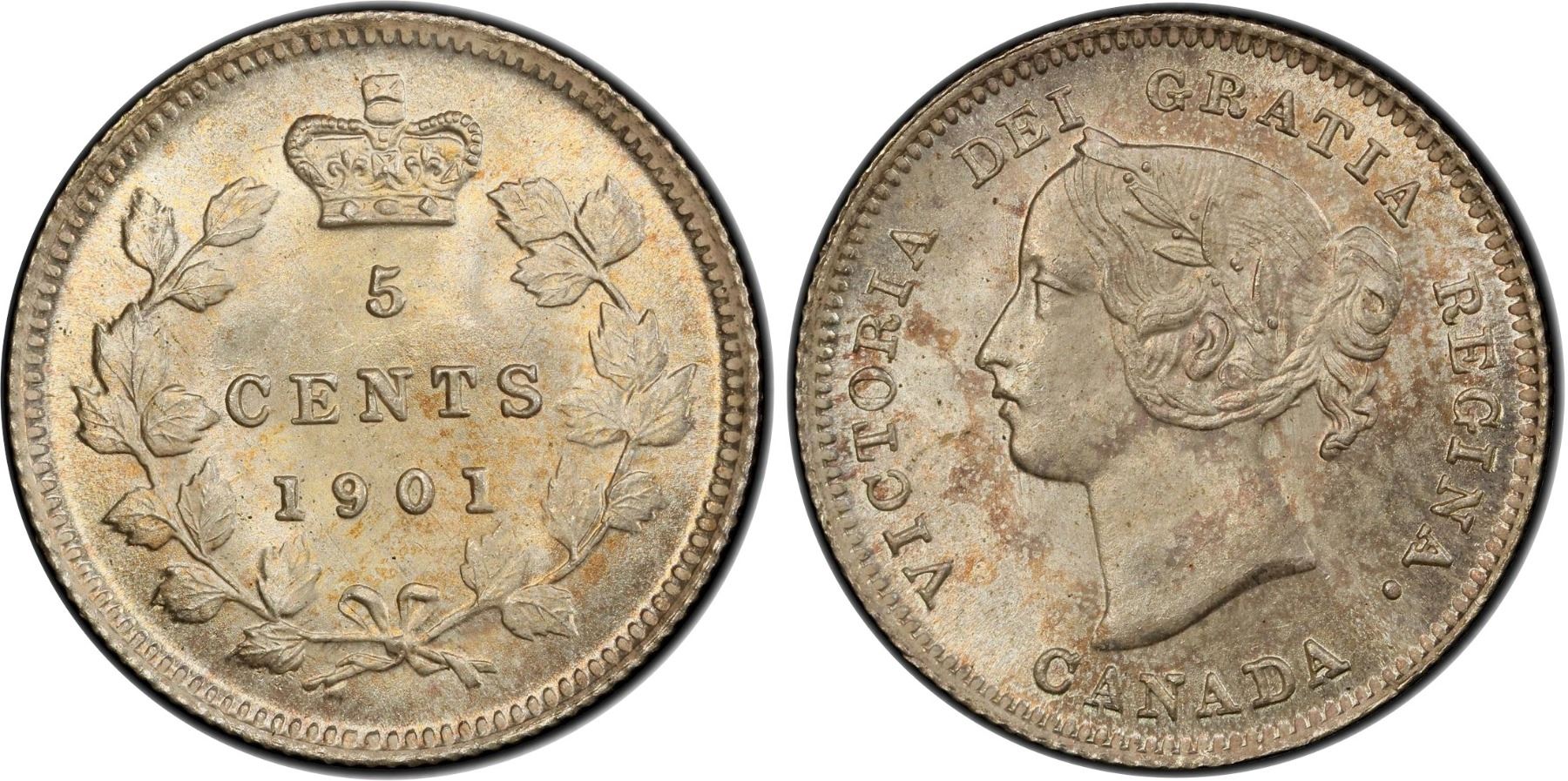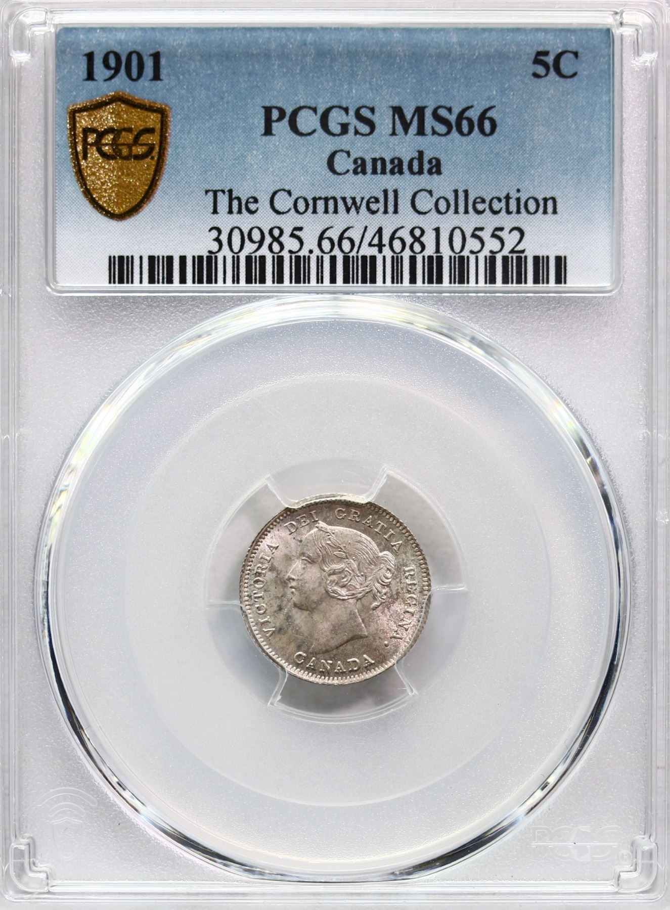 1901 5¢ ICCS Superb Gem Mint State-66 Fully brilliant and lustrous with just a hint of russet tone.