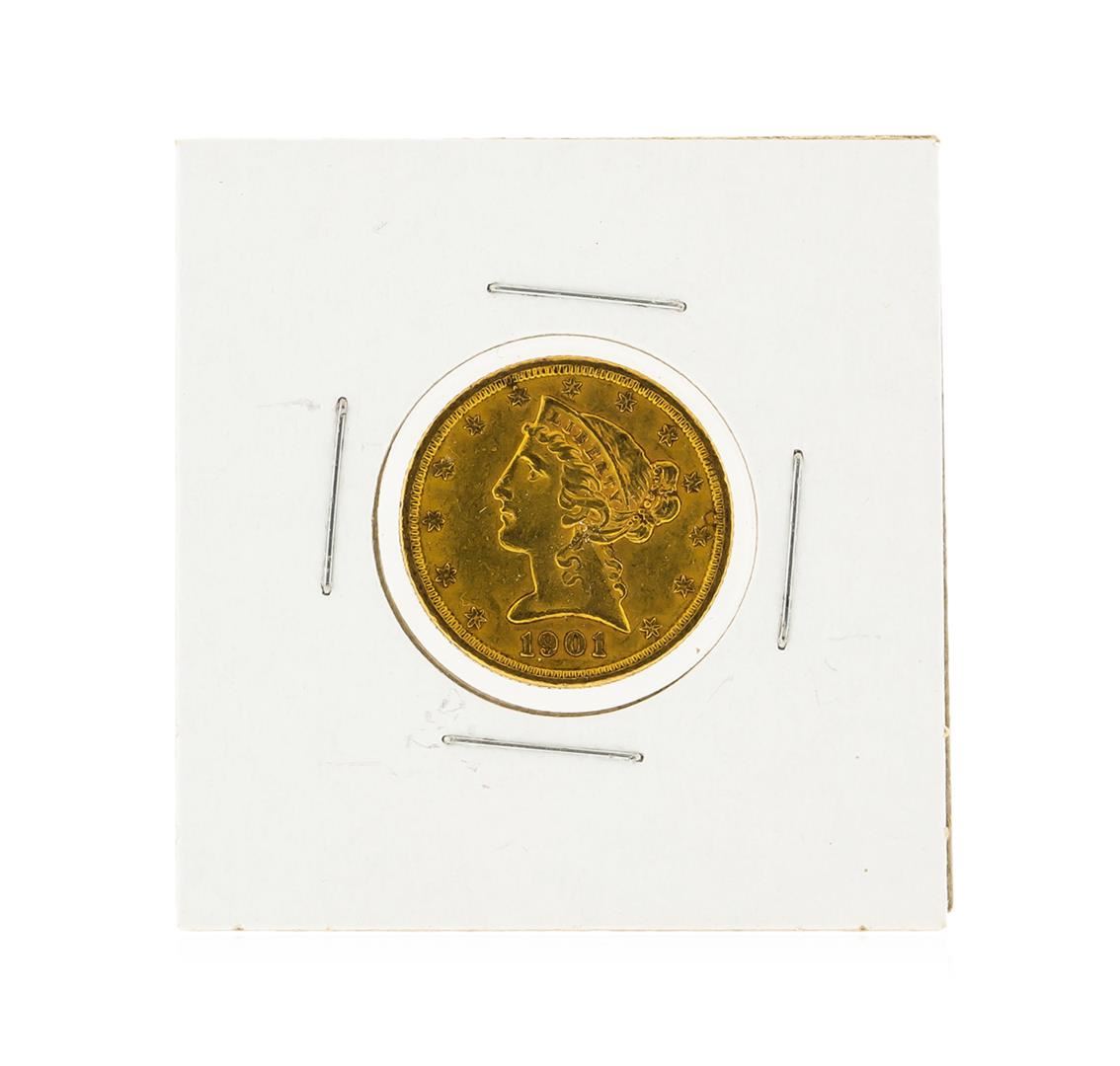 One 1901 $5 Liberty Head Half Eagle Gold Coin.