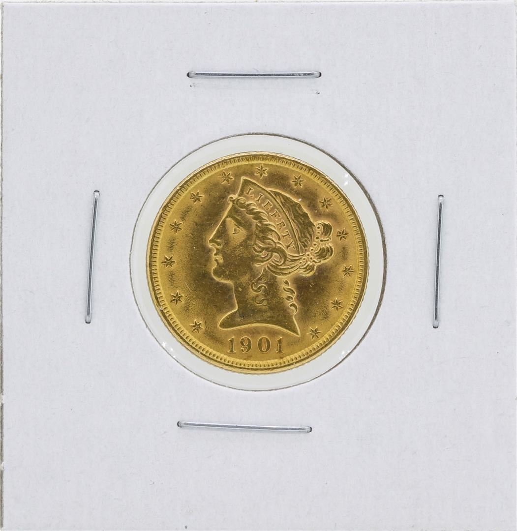 One 1901 $5 Liberty Head Half Eagle Gold Coin.