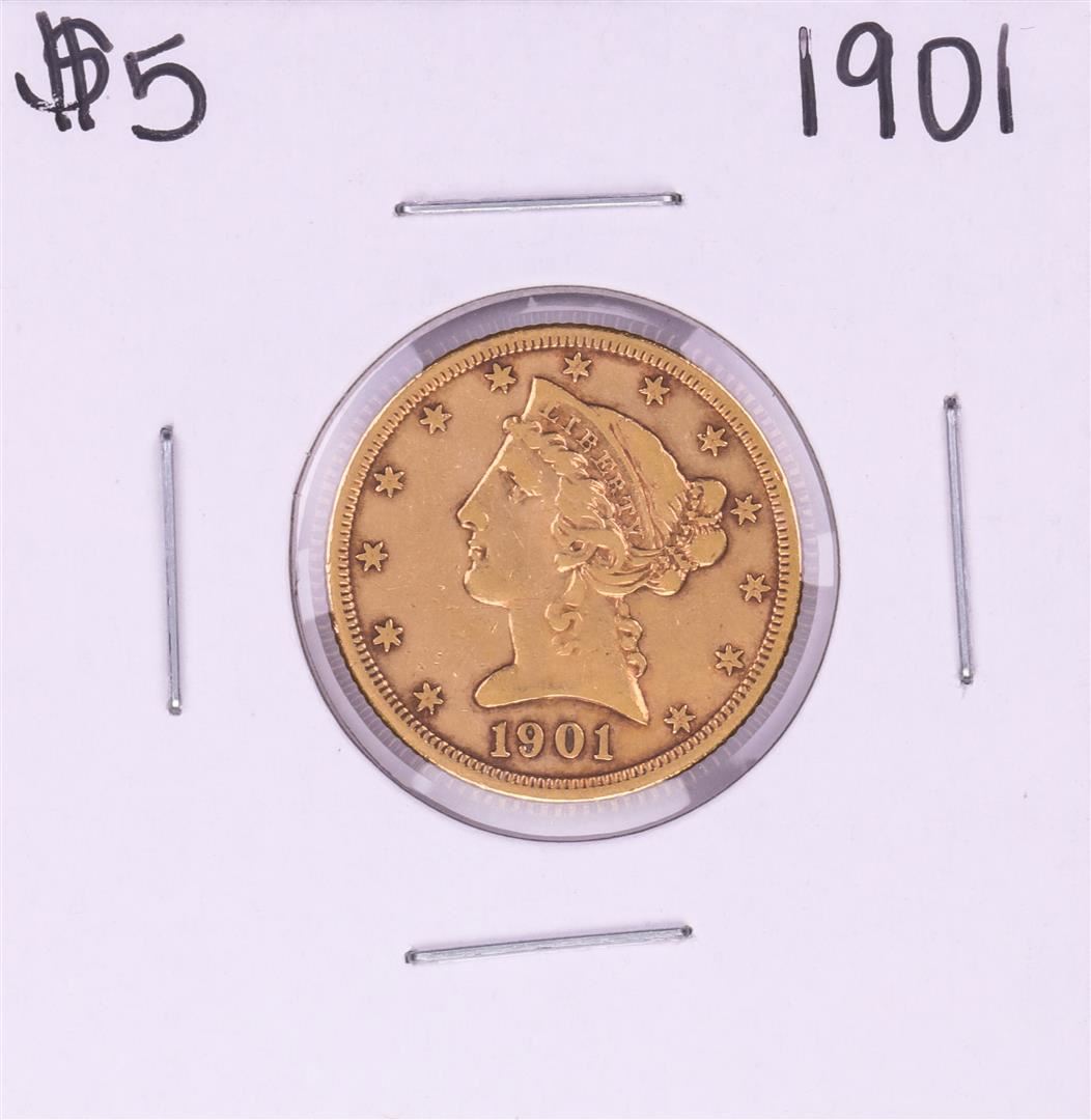 One 1901 $5 Liberty Head Half Eagle Gold Coin.