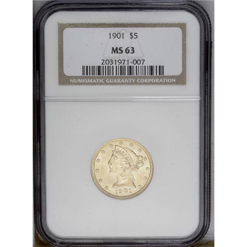 1901 $5 MS63 NGC. Exceedingly bright, frosty luster em
