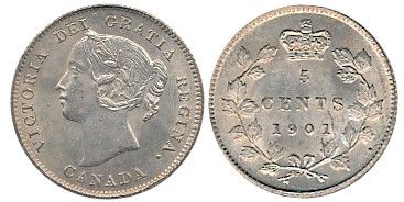 1901 5¢ PCGS MS64. Crisp sharp lustre and strike.