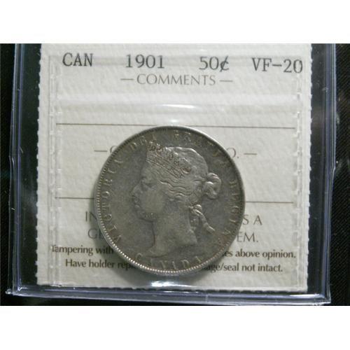 1901 50¢ ICCS VF20, an attractive example with full detail.