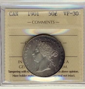 1901 50¢ ICCS VF30. Well struck and appealing.