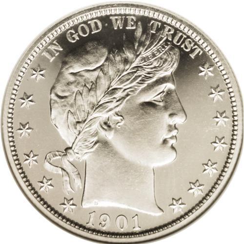 <B>1901<50C> PR67 NGC.</B></I> The 1901 is one of the more available dates as a proof in the Barber half series. However, in PR67 there are all too few to satisfy the numbers of collectors of 20th century proof type. This is an exceptionally attractive piece that is completely brilliant throughout. The devices are nicely frosted and present a strong contrast against the unfathomable depth of reflectivity seen in the fields. An outstanding turn-of-the-century type coin.