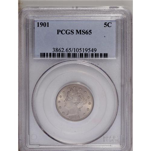 <B>1901<5C> MS65 PCGS.</B></I> This exactingly struck Gem features medium dove-gray and chestnut toning. Vibrant cartwheel sheen reveals unblemished fields and devices.