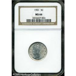 <B>1901 5C MS66 NGC.</B></I> Brilliant throughout and highly lustrous with no noticeable abrasions. Just a bit weakly struck around the peripheries. Lot:5889