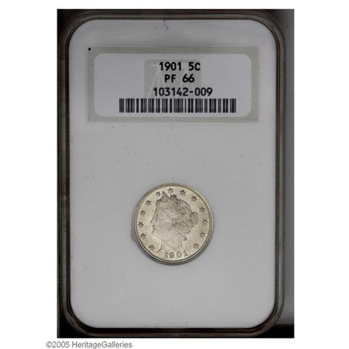 1901 5C PR66 NGC. This fully struck Premium Gem proof 1901[5C] PR66 NGC.