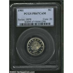 <TABLE cellSpacing=0 cellPadding=0 width="100%" bgColor=#000000 border=0><TBODY><TR><TD width="100%"><TABLE cellSpacing=1 cellPadding=3 width="100%" border=0><TBODY><TR><TD width="100%" bgColor=#79735c><FONT face=arial color=#ffffff size=3><B>Description</B> </FONT></TD></TR><TR><TD width="100%" bgColor=#ffffff><FONT face=arial size=2><B>1901 5C PR67 Cameo PCGS.</B></I> This lovely cameoed nickel is mostly brilliant with just the faintest golden streakiness present over the reverse. The fields are exceptionally deep in their mirrored reflectivity with light frost visible on the devices. Essentially perfect surfaces. </FONT></TD></TR></TBODY></TABLE></TD></TR></TBODY></TABLE><BR><A name=PricesRealized></A><TABLE cellSpacing=0 cellPadding=0 width="100%" bgColor=#000000 border=0><TBODY><TR><TD width="100%"><TABLE cellSpacing=1 cellPadding=3 width="100%" border=0><TBODY><TR><TD width="100%" bgColor=#79735c><A name=PR><FONT face=arial color=#ffffff size=3><B>Previous Prices from Heritage Auctions</B> </FONT></A></TD></TR><TR><TD bgColor=#f6f6ed>No Prior Data Recorded </TD></TR><TR><TD bgColor=#ffffff><FONT face=arial size=1 ?>PLEASE NOTE: All prices realized reflect the final hammer price PLUS the buyer's premium in auctions that charge a buyer's premium. Each item has a notation at the top of the listing indicating whether that lot included a buyer's premium. Example: A item that sells with a final hammer price of $100 and a 20% buyer's premium will display with a price realized of $120. All information listed is intended to be as accurate as possible, but errors are possible. Please use this guide carefully and inform us of any inaccuracies. </FONT></TD></TR></TBODY></TABLE></TD></TR></TBODY></TABLE><BR><TABLE cellSpacing=0 cellPadding=0 width="100%" bgColor=#000000 border=0><TBODY><TR><TD width="100%"><TABLE cellSpacing=1 cellPadding=3 width="100%" border=0><TBODY><TR><TD width="100%" bgColor=#79735c colSpan=6><FONT face=arial color=#ffffff size=3><B>Price Guide*</B> </FONT></TD></TR><TR bgColor=#f6f6ed><TD align=middle><B>Grade</B> </TD><TD align=middle><B>Coin World<BR>(Trends)</B> </TD><TD align=middle><B>Numismedia<BR>Retail</B> </TD><TD align=middle><B>Numismedia<BR>Wholesale</B> </TD><TD align=middle><B>Coin<BR>Universe</B> </TD><TD align=middle><B>Heritage<BR>Value Index</B> </TD></TR><TR bgColor=#ffffff><TD align=middle>66</TD><TD align=right>---</TD><TD align=right>---</TD><TD align=right>---</TD><TD align=right>---</TD><TD align=right>---</TD></TR><TR style="FONT-WEIGHT: bold" bgColor=#cccfdd><TD align=middle>67</TD><TD align=right>---</TD><TD align=right>---</TD><TD align=right>---</TD><TD align=right>---</TD><TD align=right>---</TD></TR><TR bgColor=#ffffff><TD align=middle>68</TD><TD align=right>---</TD><TD align=right>---</TD><TD align=right>---</TD><TD align=right>---</TD><TD align=right>---</TD></TR><TR bgColor=#ffffff><TD colSpan=6><FONT size=1>*All information listed is intended to be as accurate as possible, but errors are possible. No item may be returned or refused based on this information which is provided as a service to our customers. You should contact each pricing source directly to determine the accuracy of this information. </FONT></TD></TR></TBODY></TABLE></TD></TR></TBODY></TABLE><BR><TABLE cellSpacing=0 cellPadding=0 width="100%" bgColor=#000000 border=0><TBODY><TR><TD width="100%"><TABLE cellSpacing=1 cellPadding=3 width="100%" border=0><TBODY><TR><TD width="100%" bgColor=#79735c><FONT face=arial color=#ffffff size=3><B>Population Guide</B> </FONT></TD></TR><TR bgColor=#ffffff><TD align=middle><!-- Begin Output of Population Grid--><TABLE cellSpacing=0 cellPadding=0 width="100%" border=0><TBODY><TR><TD vAlign=center><TABLE cellSpacing=0 width="100%" border=1 cellsadding="3"><TBODY><TR><TD vAlign=center><TABLE cellSpacing=0 cellPadding=3 width="100%" border=1><TBODY><TR><TD vAlign=center align=middle bgColor=#f0f1e8 colSpan=2 <CENTER><FONT face=Arial size=2><B>PCGS Pop </B></FONT><CENTER></CENTER></TD><TD vAlign=center align=middle bgColor=#f0f1e8 colSpan=2><CENTER><FONT face=Arial size=2><B>NGC Pop</B></CENTER></FONT></TD></TR><TR><TD vAlign=center><FONT face=Arial size=2>(67)</FONT> </TD><TD vAlign=center align=right><FONT face=Arial size=2>0</FONT> </TD><TD vAlign=center><FONT face=Arial size=2>(67)</FONT> </TD><TD vAlign=center align=right><FONT face=Arial size=2>2</FONT> </TD></TR><TR><TD vAlign=center><FONT face=Arial size=2>(>67)</FONT> </TD><TD vAlign=center align=right><FONT face=Arial size=2>0</FONT> </TD><TD vAlign=center><FONT face=Arial size=2>(>67)</FONT> </TD><TD vAlign=center align=right><FONT face=Arial size=2>0</FONT> </TD></TR></TBODY></TABLE></TD></TR></TBODY></TABLE></TD></TR></TBODY></TABLE><!-- End Output of Population Grid--> Important notice: Heritage usually auctions material at the rate of 200-250 lots per hour. On some occasions eBay Live bid software or the Internet may not be able to keep up with the pace of the auction. We recommend placing a realistic absentee bid now as insurance to avoid disappointment. Occasionally the auctioneer may eliminate or reject an eBay Live bid, and the auctioneer may also reopen a lot after the close of the eBay live bidding (usually because we missed an audience bid), and may reject your bid even if it shows you as the winning bidder. By bidding via eBay Live, you agree that Heritage may award the lot to another bidder at its sole discretion under the circumstances described above or any other reasonable circumstances. Also please note that all Heritage lots purchased through eBay Live carry a 20% Buyer's Premium. Please make sure you read the Terms and Conditions before you bid.</TD></TR></TBODY></TABLE></TD></TR></TBODY></TABLE>