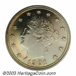 <TABLE cellSpacing=0 cellPadding=0 width="100%" bgColor=#000000 border=0><TBODY><TR><TD width="100%"><TABLE cellSpacing=1 cellPadding=3 width="100%" border=0><TBODY><TR><TD width="100%" bgColor=#79735c><FONT face=arial color=#ffffff size=3><B>Description</B> </FONT></TD></TR><TR><TD width="100%" bgColor=#ffffff><FONT face=arial size=2><B>1901 5C PR68 ICG.</B></I> Similar to the other PR68 of this date in this sale, this piece also is covered with ice-blue patina. However, on the left margin of each side of this coin there is a slight accent of rainbow toning. Given these visual attributes, this is a coin of indescribable beauty (although we have tried to convey some idea of the aesthetics inherent in this piece), and that is without even mentioning the technical perfection of the surfaces. Simply outstanding quality and a terrific type coin. </FONT></TD></TR></TBODY></TABLE></TD></TR></TBODY></TABLE><BR><A name=PricesRealized></A><TABLE cellSpacing=0 cellPadding=0 width="100%" bgColor=#000000 border=0><TBODY><TR><TD width="100%"><TABLE cellSpacing=1 cellPadding=3 width="100%" border=0><TBODY><TR><TD width="100%" bgColor=#79735c><A name=PR><FONT face=arial color=#ffffff size=3><B>Previous Prices from Heritage Auctions</B> </FONT></A></TD></TR><TR><TD bgColor=#f6f6ed>No Prior Data Recorded </TD></TR><TR><TD bgColor=#ffffff><FONT face=arial size=1 ?>PLEASE NOTE: All prices realized reflect the final hammer price PLUS the buyer's premium in auctions that charge a buyer's premium. Each item has a notation at the top of the listing indicating whether that lot included a buyer's premium. Example: A item that sells with a final hammer price of $100 and a 20% buyer's premium will display with a price realized of $120. All information listed is intended to be as accurate as possible, but errors are possible. Please use this guide carefully and inform us of any inaccuracies. </FONT></TD></TR></TBODY></TABLE></TD></TR></TBODY></TABLE><BR><TABLE cellSpacing=0 cellPadding=0 width="100%" bgColor=#000000 border=0><TBODY><TR><TD width="100%"><TABLE cellSpacing=1 cellPadding=3 width="100%" border=0><TBODY><TR><TD width="100%" bgColor=#79735c colSpan=6><FONT face=arial color=#ffffff size=3><B>Price Guide*</B> </FONT></TD></TR><TR bgColor=#f6f6ed><TD align=middle><B>Grade</B> </TD><TD align=middle><B>Coin World<BR>(Trends)</B> </TD><TD align=middle><B>Numismedia<BR>Retail</B> </TD><TD align=middle><B>Numismedia<BR>Wholesale</B> </TD><TD align=middle><B>Coin<BR>Universe</B> </TD><TD align=middle><B>Heritage<BR>Value Index</B> </TD></TR><TR bgColor=#ffffff><TD align=middle>67</TD><TD align=right>---</TD><TD align=right>---</TD><TD align=right>$1,400.00</TD><TD align=right>$2,400.00</TD><TD align=right>$1,472.50</TD></TR><TR style="FONT-WEIGHT: bold" bgColor=#cccfdd><TD align=middle>68</TD><TD align=right>---</TD><TD align=right>---</TD><TD align=right>---</TD><TD align=right>---</TD><TD align=right>---</TD></TR><TR bgColor=#ffffff><TD align=middle>69</TD><TD align=right>---</TD><TD align=right>---</TD><TD align=right>---</TD><TD align=right>---</TD><TD align=right>---</TD></TR><TR bgColor=#ffffff><TD colSpan=6><FONT size=1>*All information listed is intended to be as accurate as possible, but errors are possible. No item may be returned or refused based on this information which is provided as a service to our customers. You should contact each pricing source directly to determine the accuracy of this information. </FONT></TD></TR></TBODY></TABLE></TD></TR></TBODY></TABLE><BR><TABLE cellSpacing=0 cellPadding=0 width="100%" bgColor=#000000 border=0><TBODY><TR><TD width="100%"><TABLE cellSpacing=1 cellPadding=3 width="100%" border=0><TBODY><TR><TD width="100%" bgColor=#79735c><FONT face=arial color=#ffffff size=3><B>Population Guide</B> </FONT></TD></TR><TR bgColor=#ffffff><TD align=middle><!-- Begin Output of Population Grid--><TABLE cellSpacing=0 cellPadding=0 width="100%" border=0><TBODY><TR><TD vAlign=center><TABLE cellSpacing=0 width="100%" border=1 cellsadding="3"><TBODY><TR><TD vAlign=center><TABLE cellSpacing=0 cellPadding=3 width="100%" border=1><TBODY><TR><TD vAlign=center align=middle bgColor=#f0f1e8 colSpan=2 <CENTER><FONT face=Arial size=2><B>PCGS Pop </B></FONT><CENTER></CENTER></TD><TD vAlign=center align=middle bgColor=#f0f1e8 colSpan=2><CENTER><FONT face=Arial size=2><B>NGC Pop</B></CENTER></FONT></TD></TR><TR><TD vAlign=center><FONT face=Arial size=2>(68)</FONT> </TD><TD vAlign=center align=right><FONT face=Arial size=2>0</FONT> </TD><TD vAlign=center><FONT face=Arial size=2>(68)</FONT> </TD><TD vAlign=center align=right><FONT face=Arial size=2>2</FONT> </TD></TR><TR><TD vAlign=center><FONT face=Arial size=2>(>68)</FONT> </TD><TD vAlign=center align=right><FONT face=Arial size=2>0</FONT> </TD><TD vAlign=center><FONT face=Arial size=2>(>68)</FONT> </TD><TD vAlign=center align=right><FONT face=Arial size=2>0</FONT> </TD></TR></TBODY></TABLE></TD></TR></TBODY></TABLE></TD></TR></TBODY></TABLE><!-- End Output of Population Grid--> Important notice: Heritage usually auctions material at the rate of 200-250 lots per hour. On some occasions eBay Live bid software or the Internet may not be able to keep up with the pace of the auction. We recommend placing a realistic absentee bid now as insurance to avoid disappointment. Occasionally the auctioneer may eliminate or reject an eBay Live bid, and the auctioneer may also reopen a lot after the close of the eBay live bidding (usually because we missed an audience bid), and may reject your bid even if it shows you as the winning bidder. By bidding via eBay Live, you agree that Heritage may award the lot to another bidder at its sole discretion under the circumstances described above or any other reasonable circumstances. Also please note that all Heritage lots purchased through eBay Live carry a 20% Buyer's Premium. Please make sure you read the Terms and Conditions before you bid.</TD></TR></TBODY></TABLE></TD></TR></TBODY></TABLE>