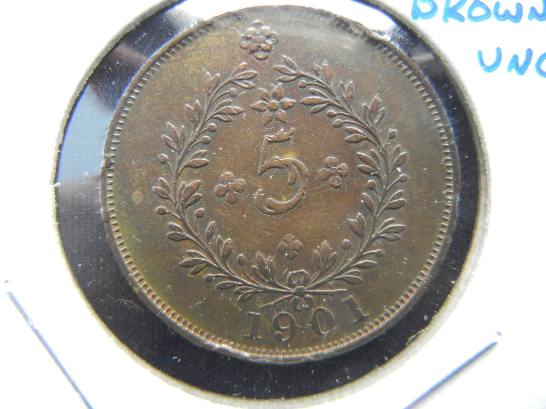 1901 Azores 5 Reis. Brown UNC. Scarce.