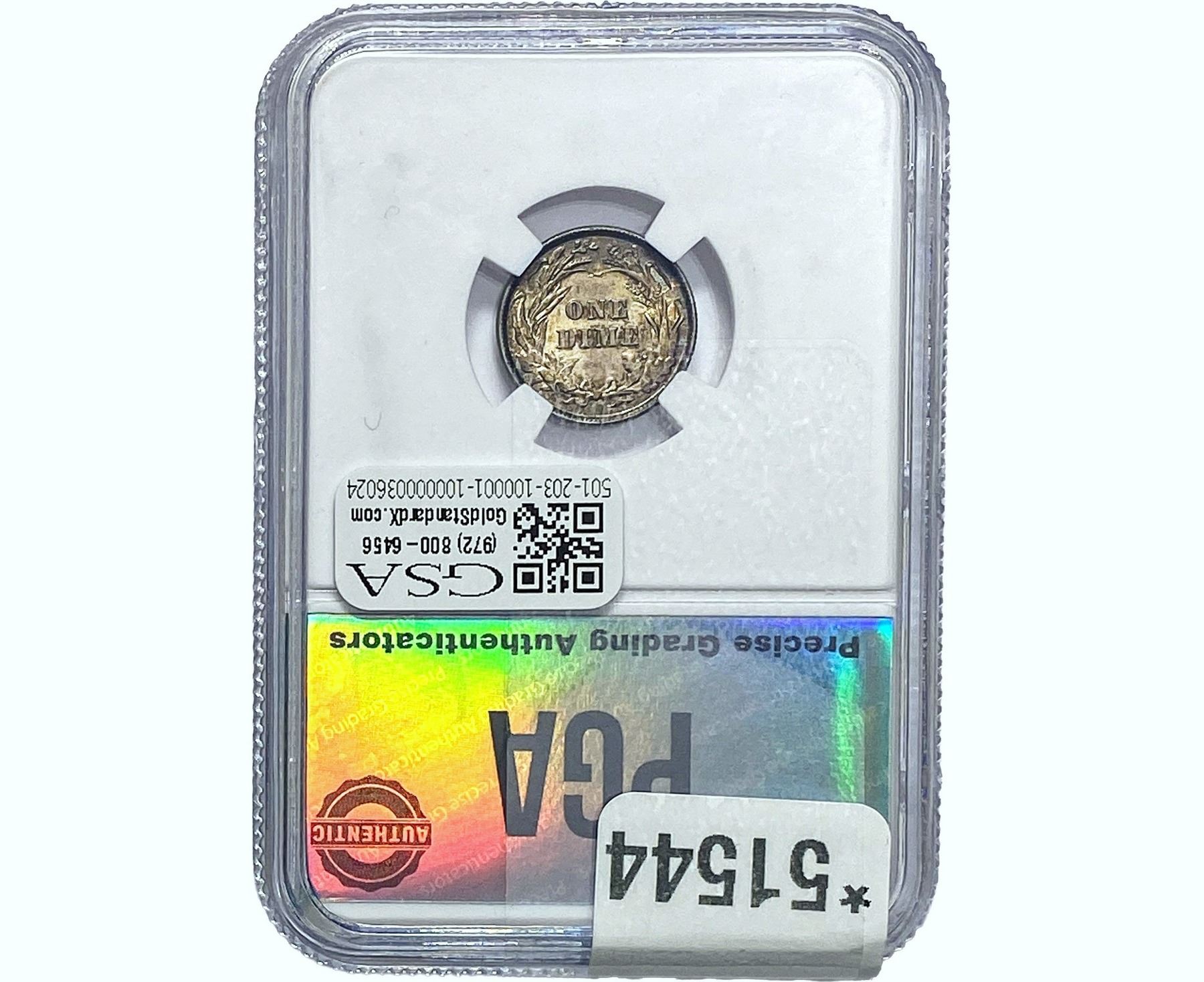 l. All non-certified coins and currency are guaranteed genuine, but are not guaranteed as to grade, since grading is a matter of opinion, an art and not a science, and therefore the description rendered by GSA or any third-party grading service may not agree with the opinion of others (including trained experts), and the same expert may not grade the same item with the same grade at two different times. GSA may, but is not obligated to, express an opinion as to non-certified numismatic items, in GSA’s opinion, or by its employees’ experience and the current interpretation of the American Numismatic Association’s standards as of the date the catalog was prepared. There is no guarantee or warranty expressed or implied that the grading opinions utilized by GSA, if any, will meet the standards of any grading service at any time in the future.